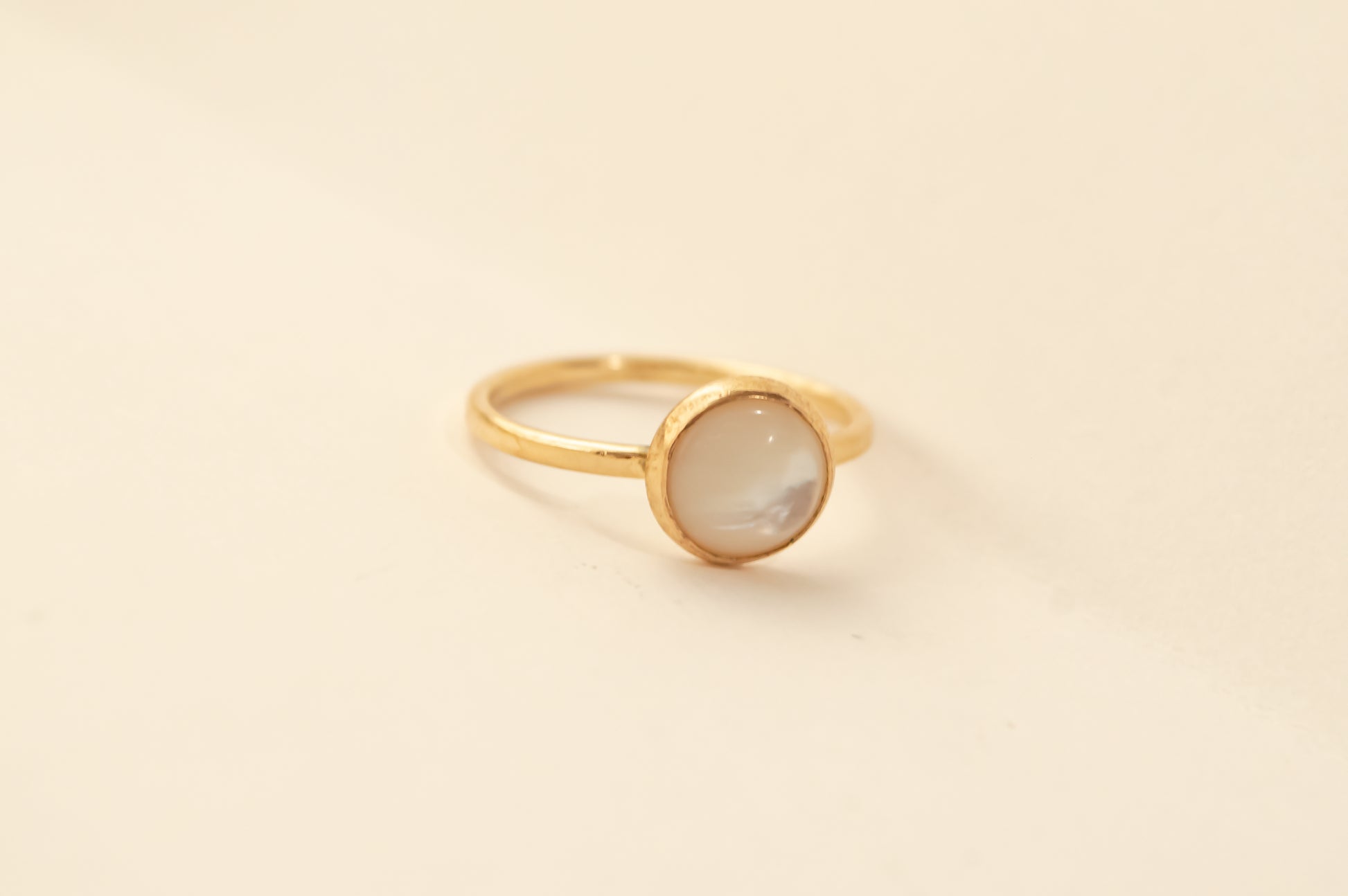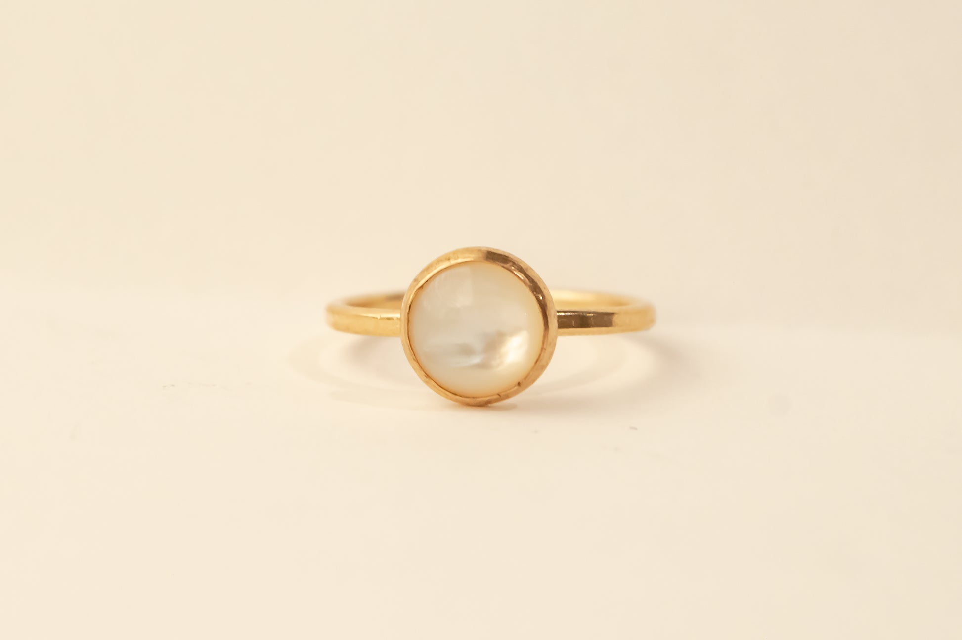 This ring is adorned with mother of pearl, and it is a perfect addition to your collection of pearl pieces.