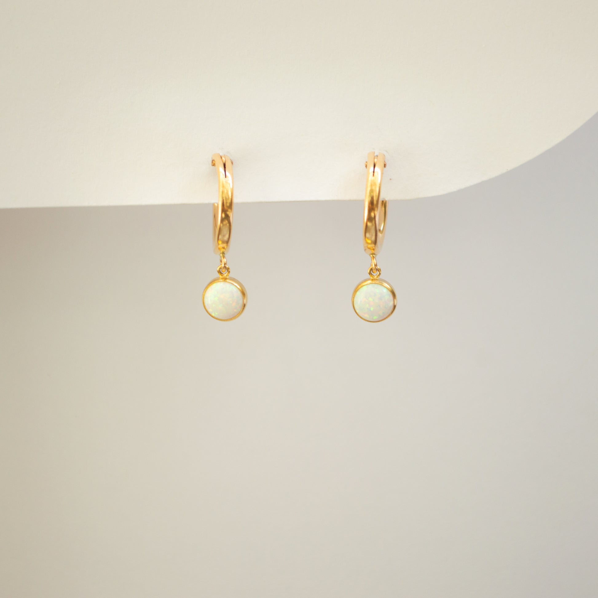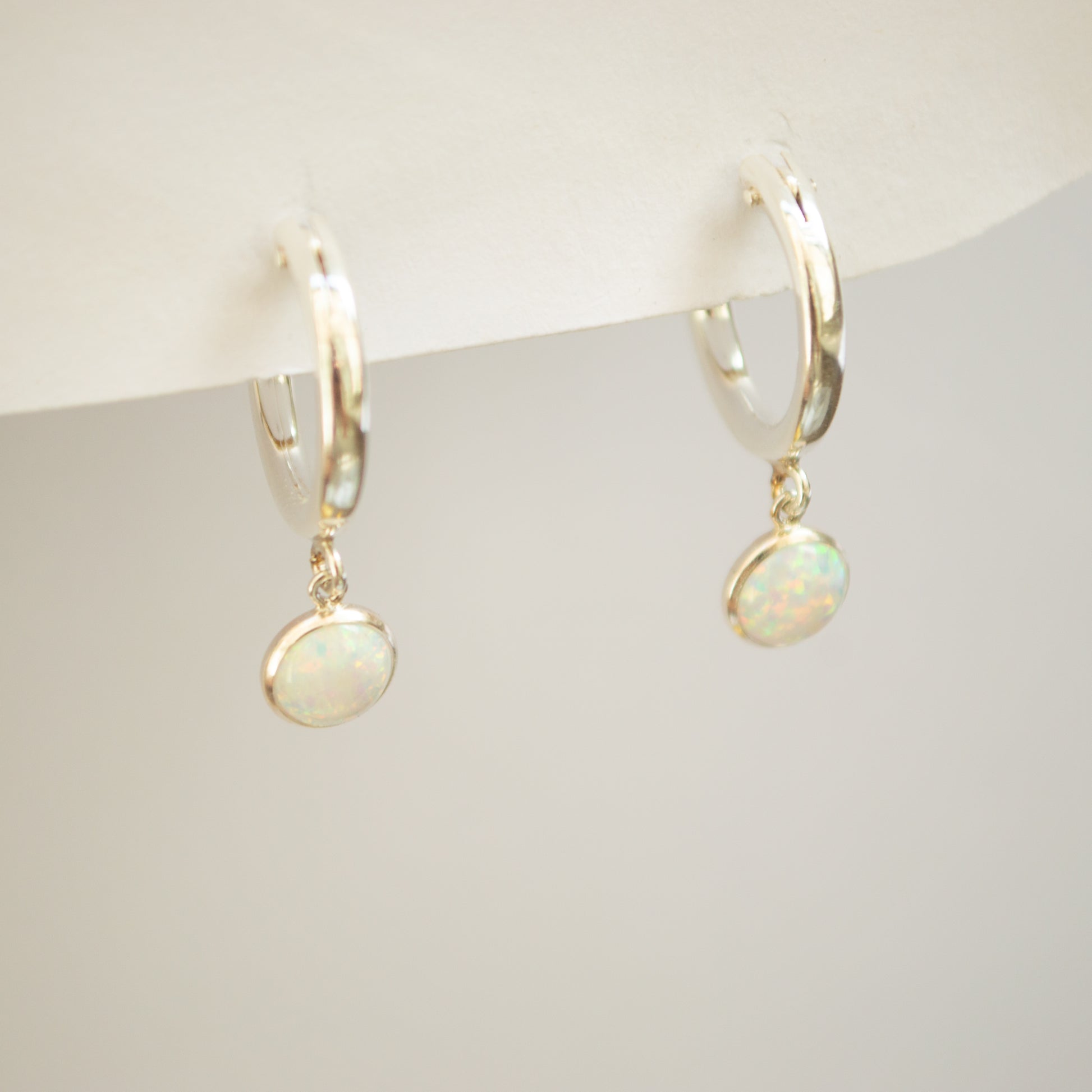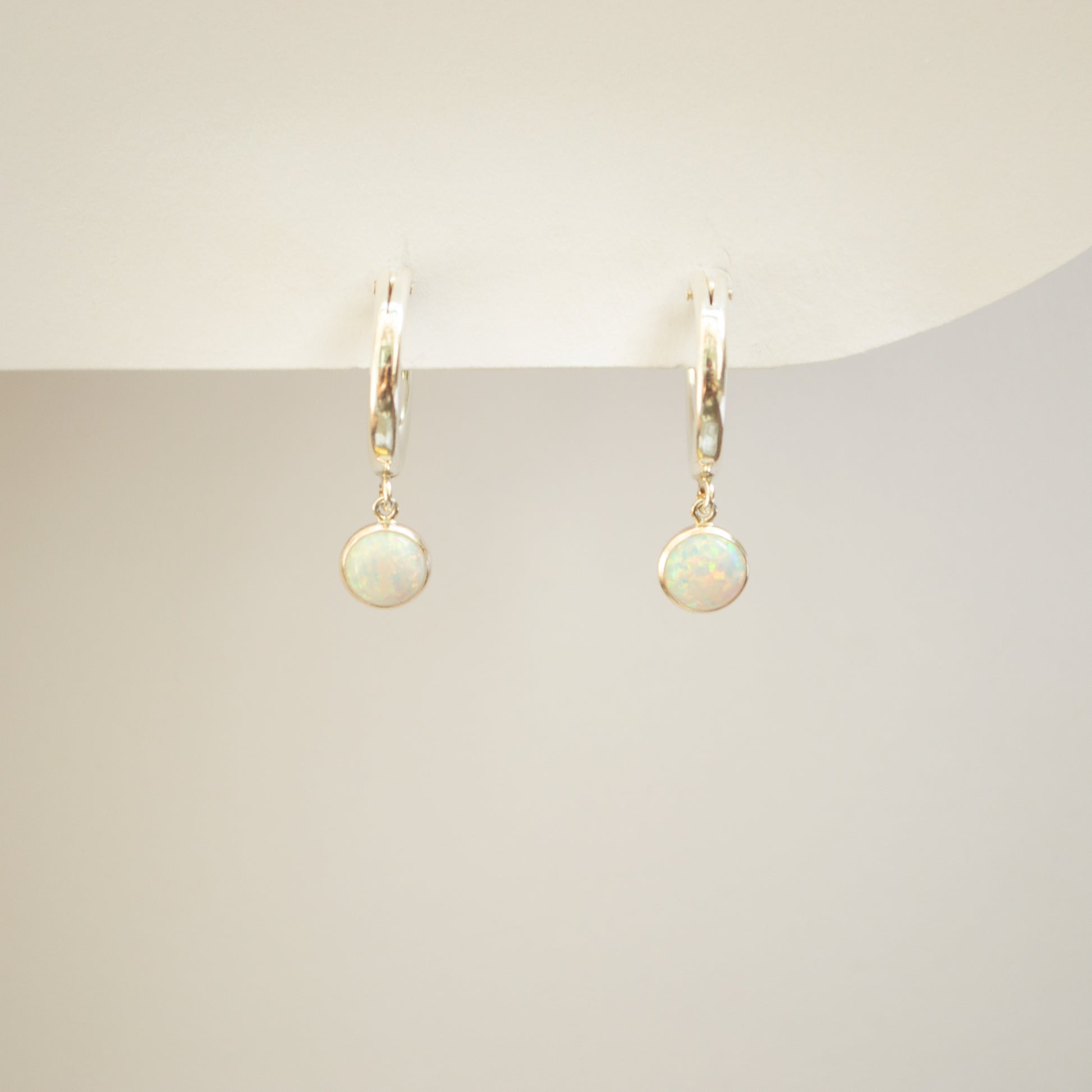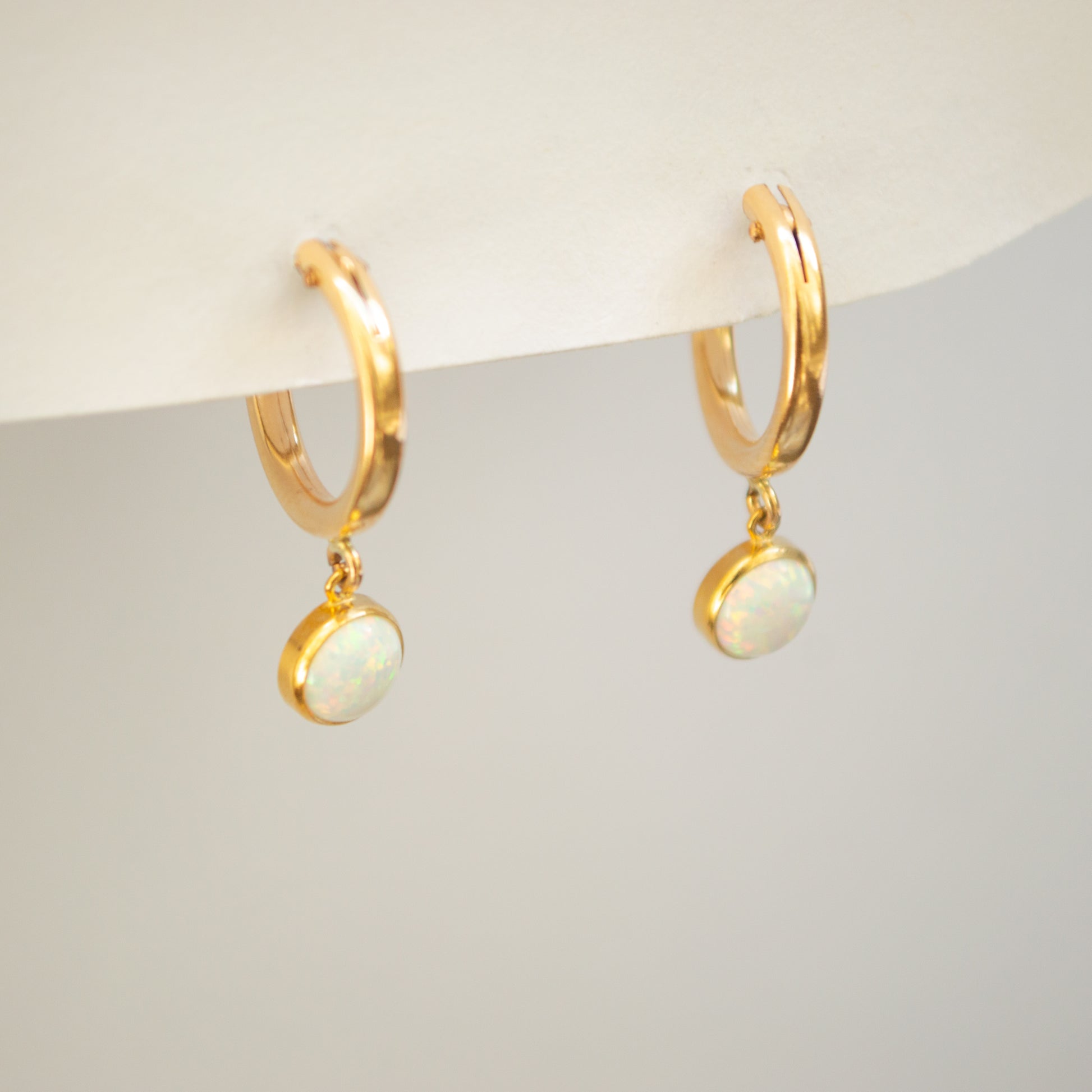 Indulge in ethereal elegance with our Opal Bezel Hoops, showcasing captivating opal stones nestled delicately within sleek bezel settings. The perfect addition to your earring collection.