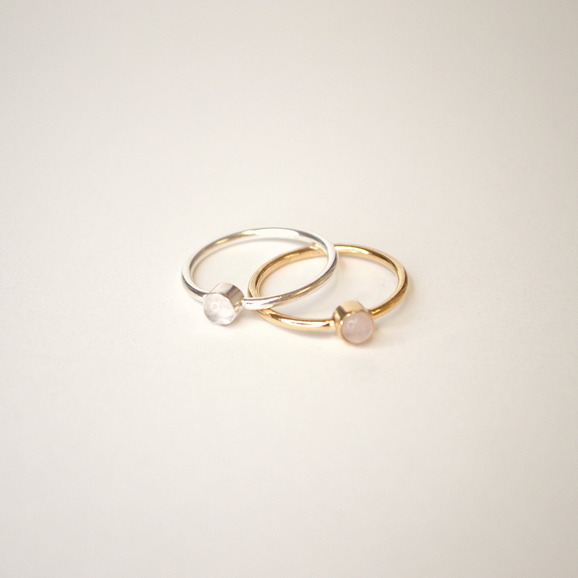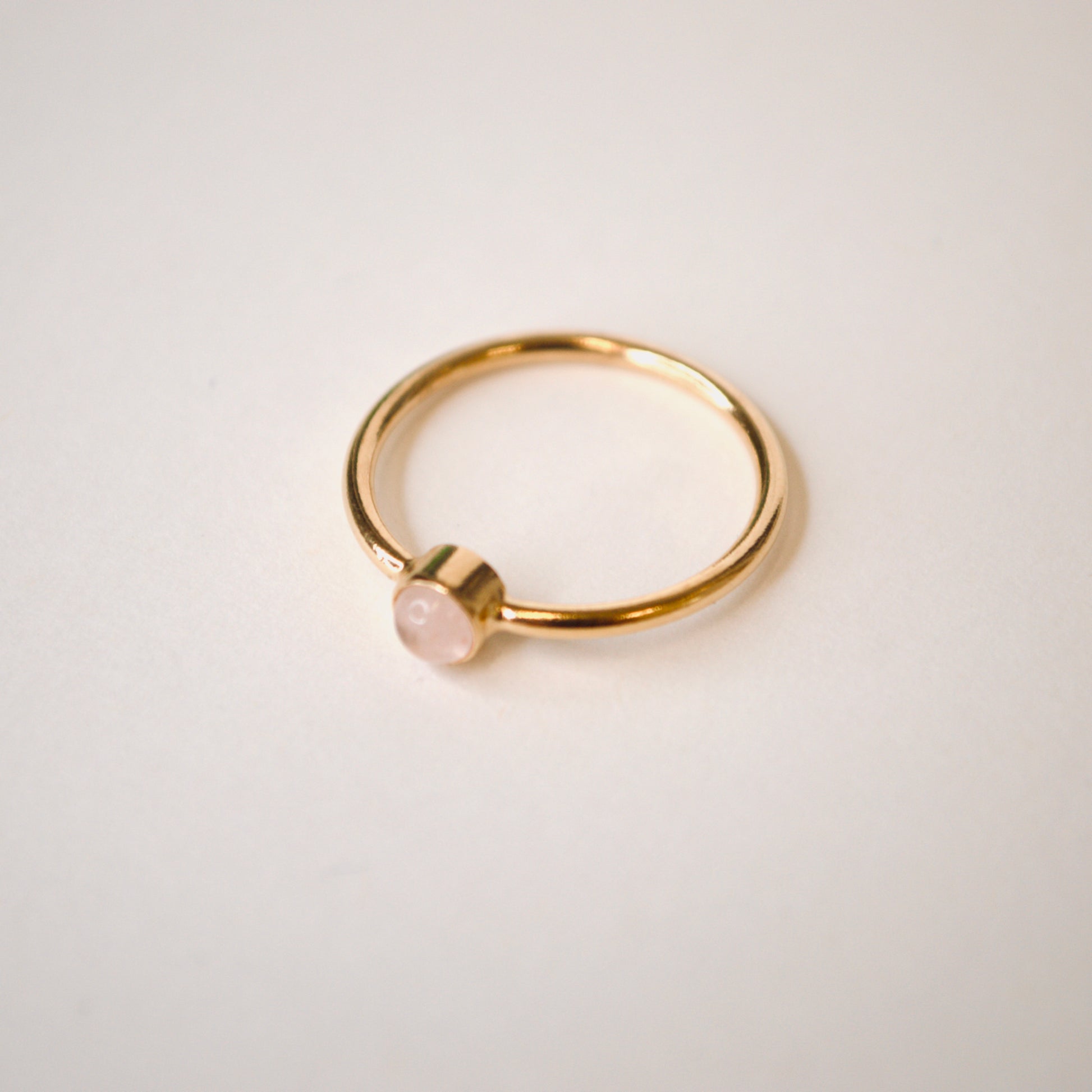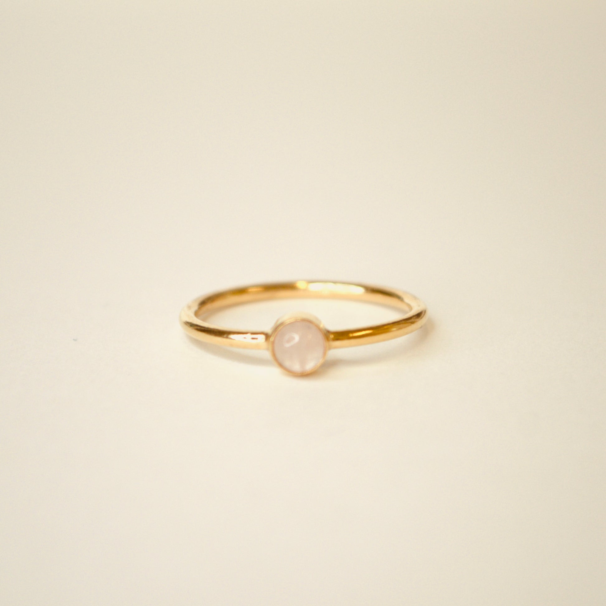 Soft, feminine, and full of meaning—this handcrafted ring features a pale pink rose quartz stone, delicately set in a hand-bezeled gold or silver band. The dainty design and smooth, minimalist setting make it perfect for everyday wear, while the gentle glow of rose quartz adds a romantic, calming touch.